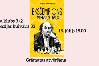 Grāmatas "Eksčempions. Mihails Tāls." grāmatas atvēršanas pasākums tiek pārcelts uz 18. jūliju